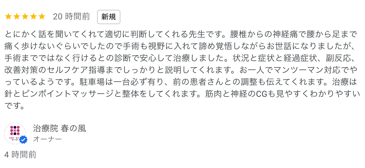 腰から足にかけての痛みやしびれは、日常生活にも大きく影響し、不安も非常に大きかったと思います。「手術も覚悟していた」という状況の中で当院を選んでいただけたこと、そして少しでも安心していただけたことを大変嬉しく思います。 […]