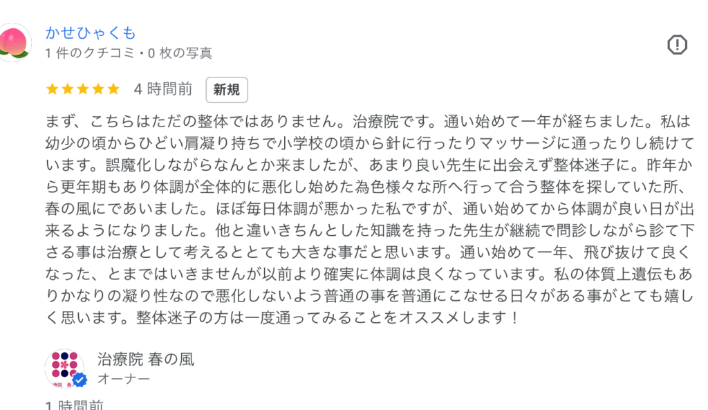 今回は、幼少時からの辛い肩こりで、様々な整体院へ通っていた女性患者様の喜びの声をいただきました。