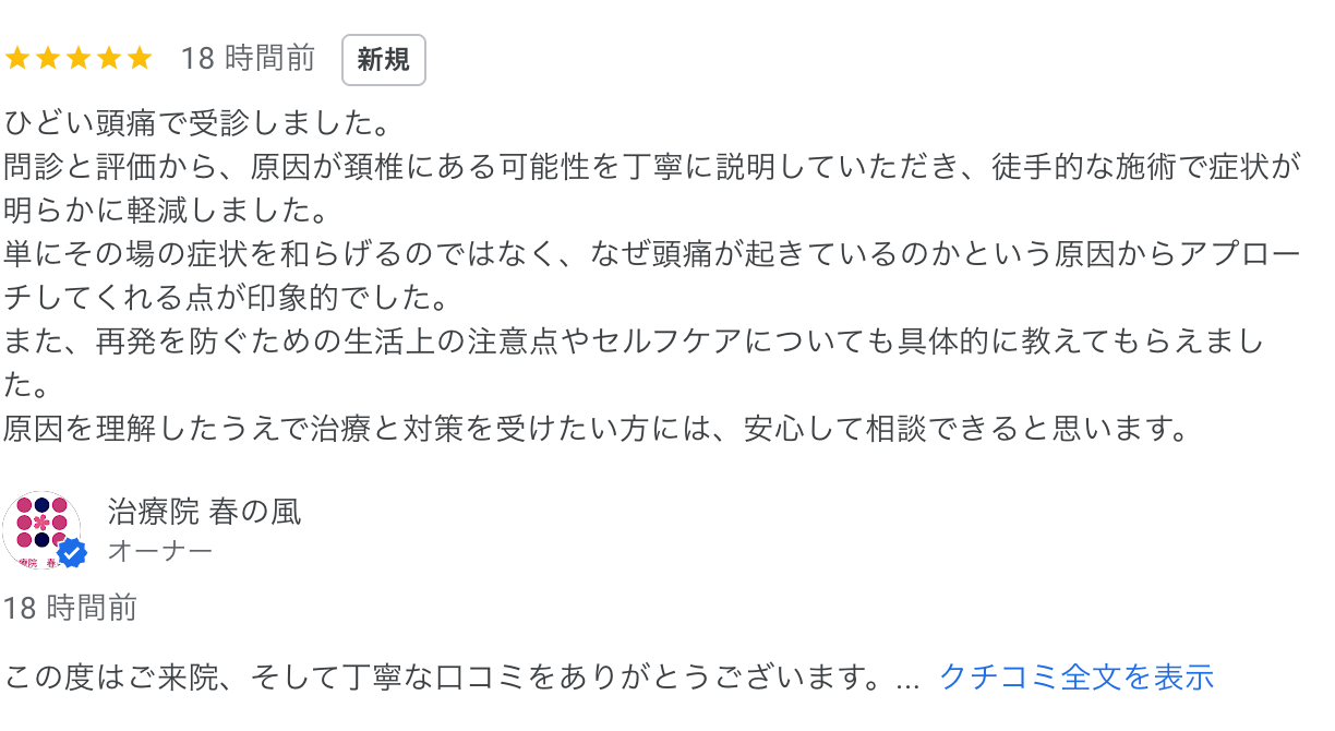 今回は、長年の頭痛でお悩みの男性から症状改善の喜びの口コミをいただきました。 首の凝りが原因で起こる頭痛は、緊張型頭痛と呼ばれることが多いタイプです。長時間のデスクワークやスマホ操作により首や肩の筋肉が硬くなると、血流が […]